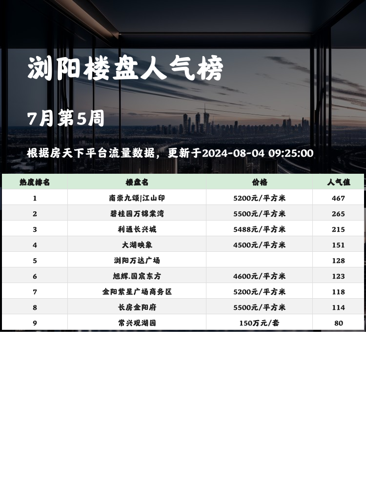 🏠在买房的过程中,选择一个受欢迎的楼盘至关重要!关注人气楼盘榜单,可以帮助你更好地了解市场动态,找到性价比高、配套完善的楼盘。当前市场的核心逻辑是:交通便利、教育配套和户型设计。下面就来看看浏阳人气楼盘榜单的前三名楼盘吧!