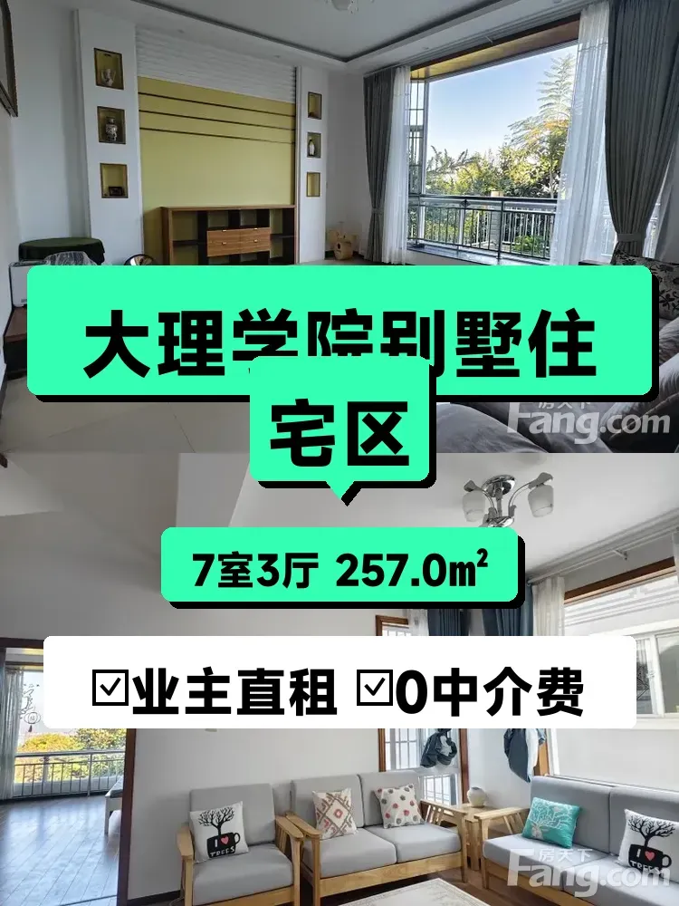 标题:自家257㎡大理学院别墅整租🏡7室3厅南北通透 年付7200超值
