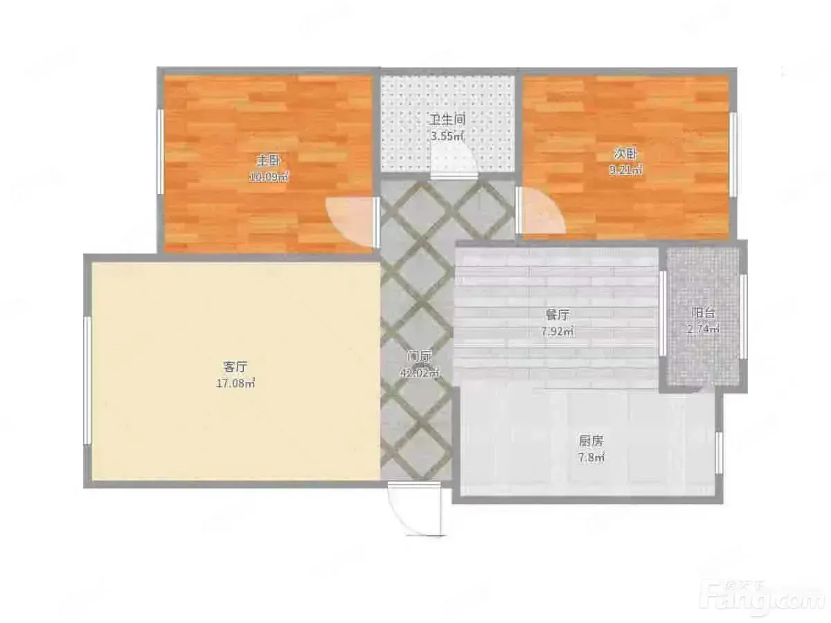 户型是2室1厅1卫,南北朝向