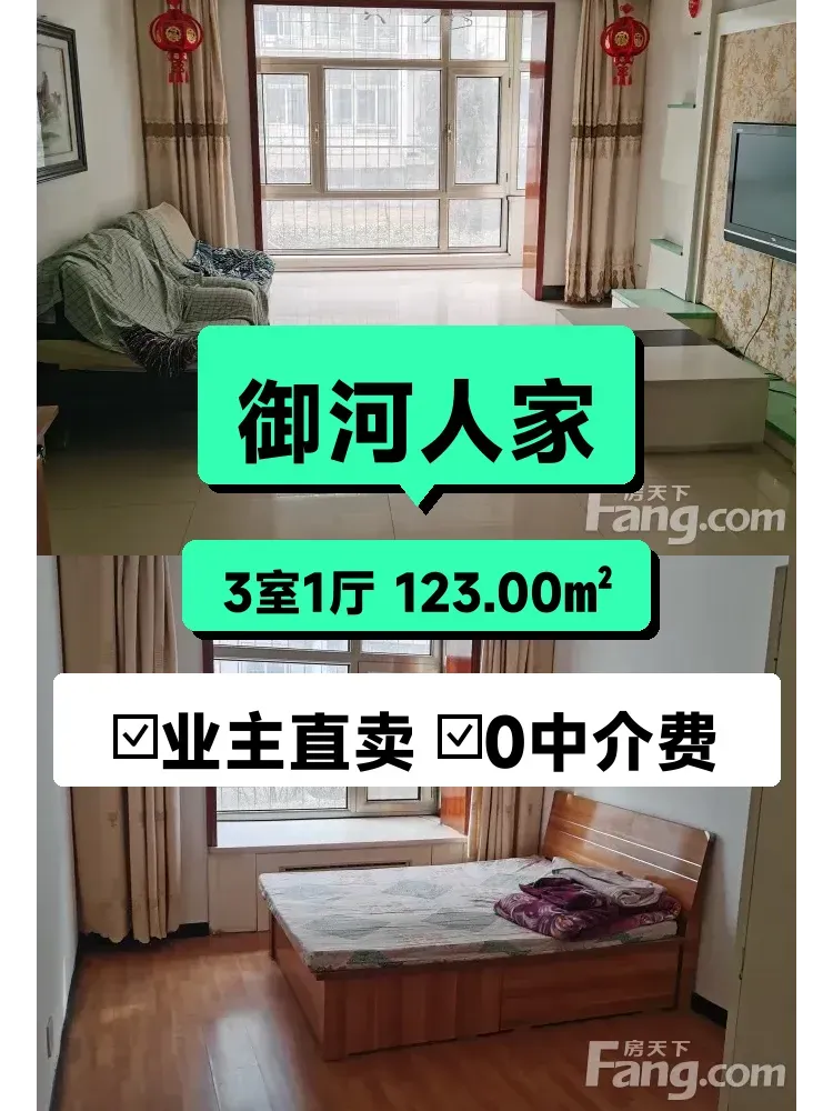 标题:自家御河人家123平三居急售!南北通透一层带院🌿