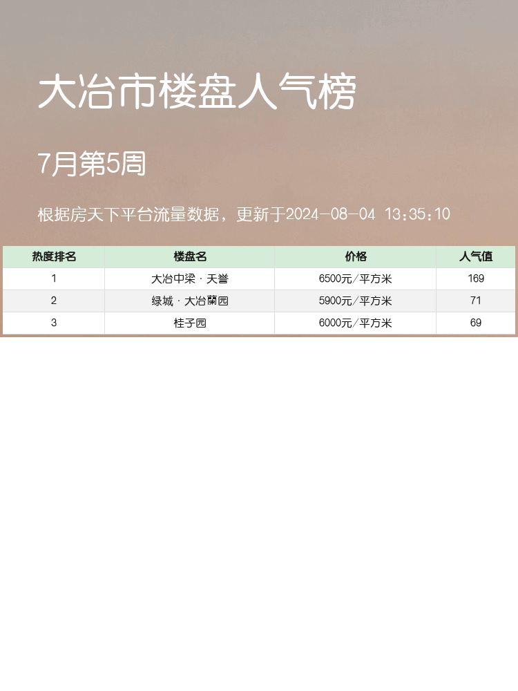 ✨🚀 大冶市TOP3人气楼盘新鲜出炉,快来看看吧: