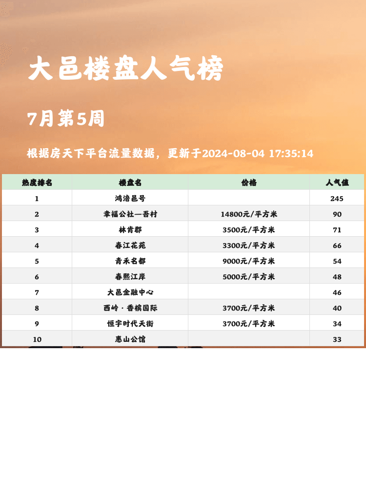 通过以上信息,相信大家对大邑的人气楼盘有了更清晰的了解。如果你正考虑在这个区域购房,不妨参考这份榜单,找到最适合自己的那一套🏡!