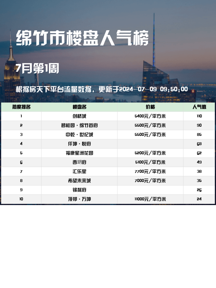 ✨接下来为大家介绍绵竹市人气楼盘榜单的前三名楼盘,快来看看有无你的心仪之选吧!