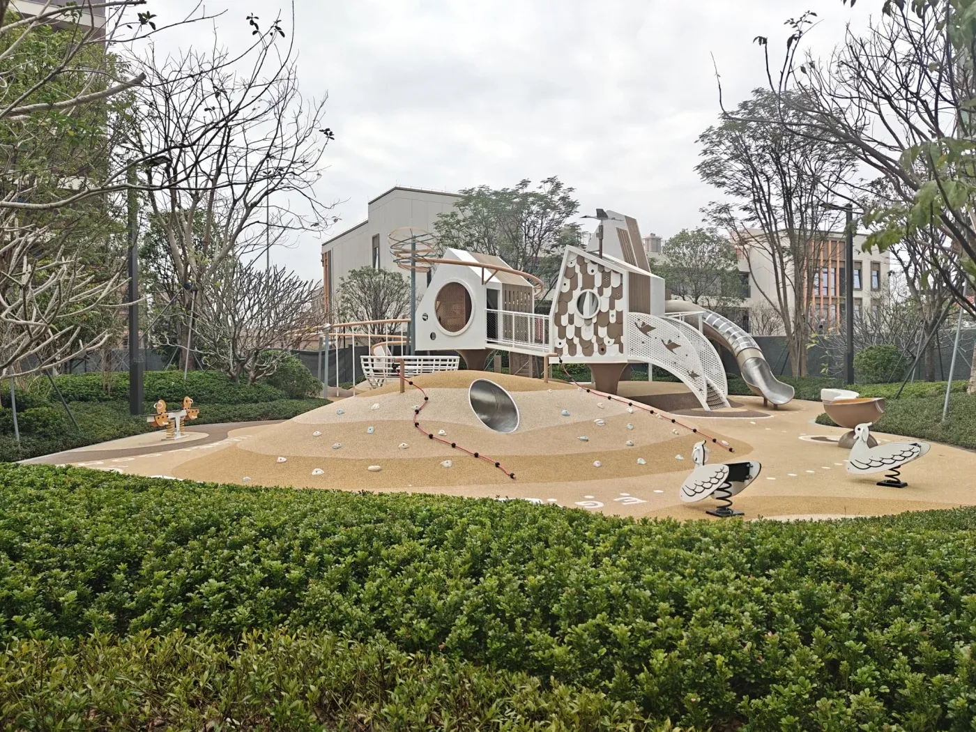 81岁的陈阿婆坐在观景阳台织毛衣:"在这能看到我小时候游泳的东江支流。"作为首批入住业主,她家把连廊改成了风雨茶室。儿子偷偷告诉我,老人每天要去三江六岸示范段"打卡"两次。真实体验:社区泳池正对江面,儿童区有地暖;但要注意装修交付标准里不含智能马桶。周末常见三代同堂在中央草坪野餐,年轻爸妈推着婴儿车就能到龙湾广场喂鸽子。当你在270°飘窗前煮咖啡,孩子在专属书房写作业,老人沿着滨江步道遛弯时,突然就懂了什么是"容器里的生活美学"。