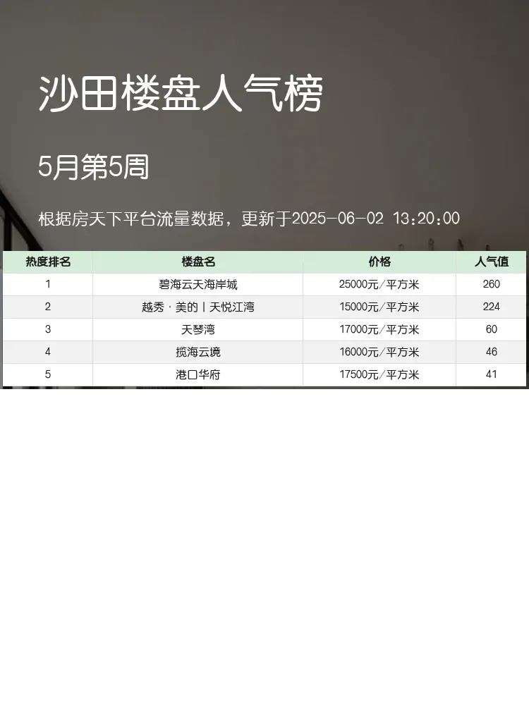 买房盯准人气榜不会错!🔥当前市场下,配套成熟度+户型实用性+价格性价比才是王道。沙田这份热腾腾的榜单,实测筛选出真正值得关注的楼盘,拒绝"网红滤镜",带你挖出真实优缺点~