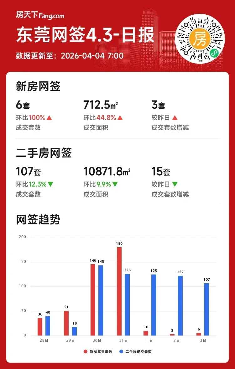 成交套数:6套 ↑100%(较昨日增3套)