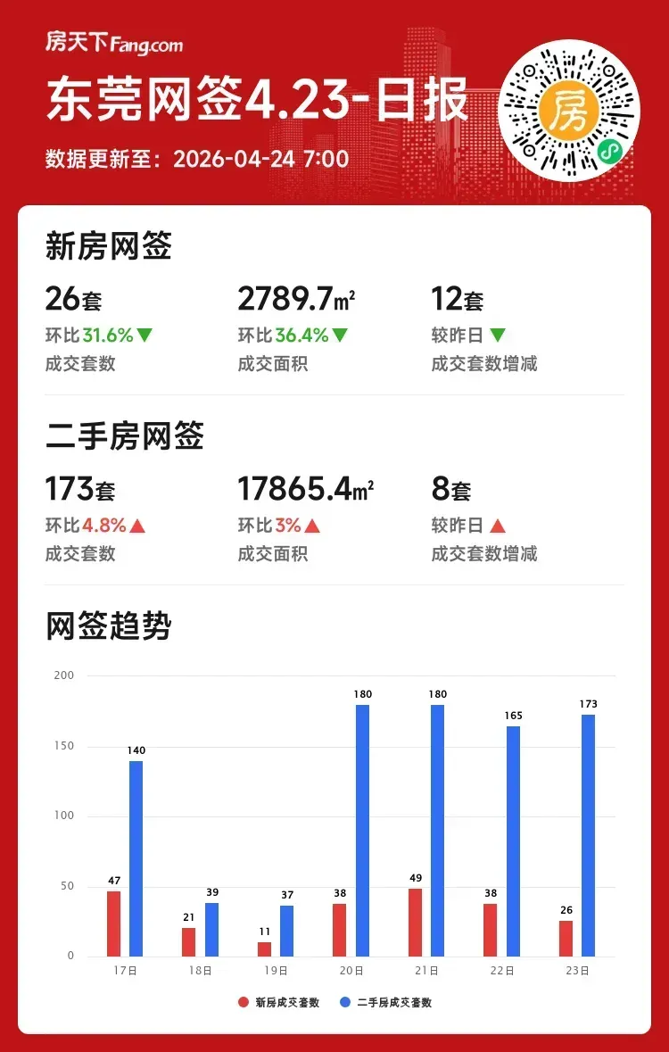 成交套数:173套 ↑4.8%(较昨日增8套)