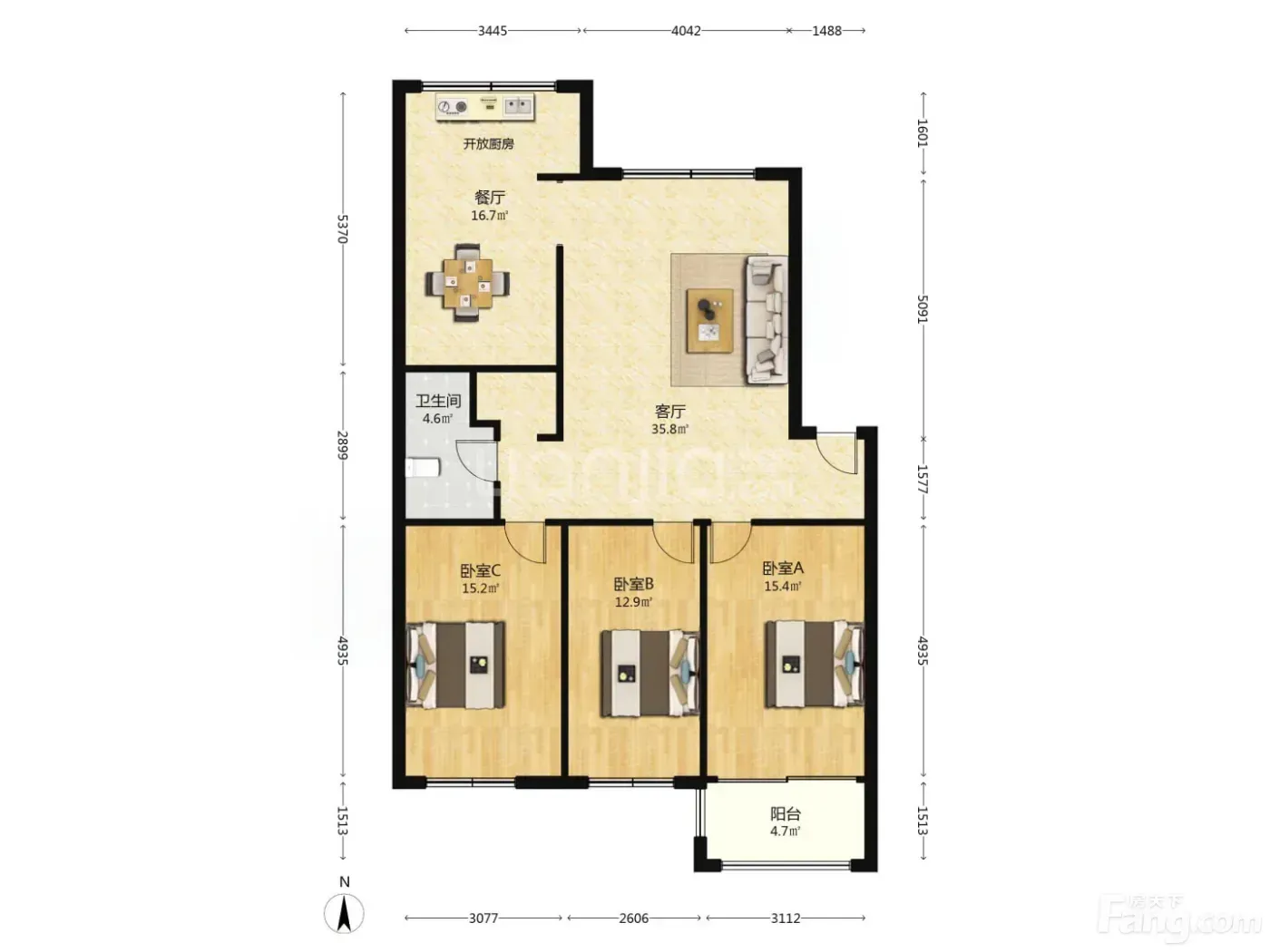 ✅ 户型超正!3室2厅全明格局,餐厅能摆下8人圆桌,亲戚来了超有面儿