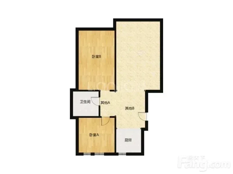 户型是2室2厅0厨1卫1阳台,南北朝向