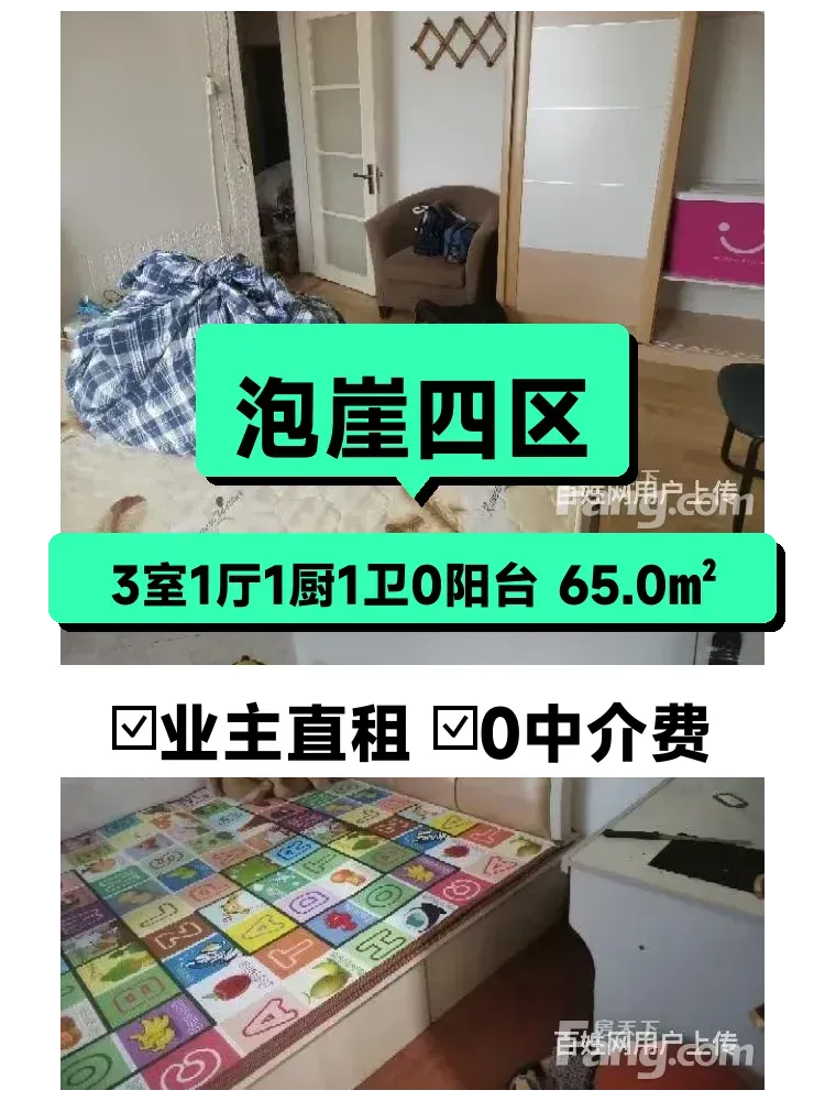 :自家泡崖四区三室一厅出租,工业大学旁交通超便利!