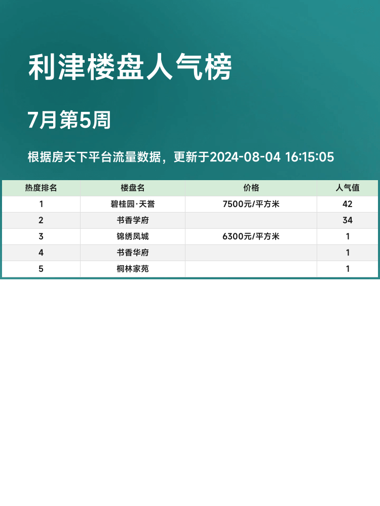 利津人气楼盘榜热度排名第1名: