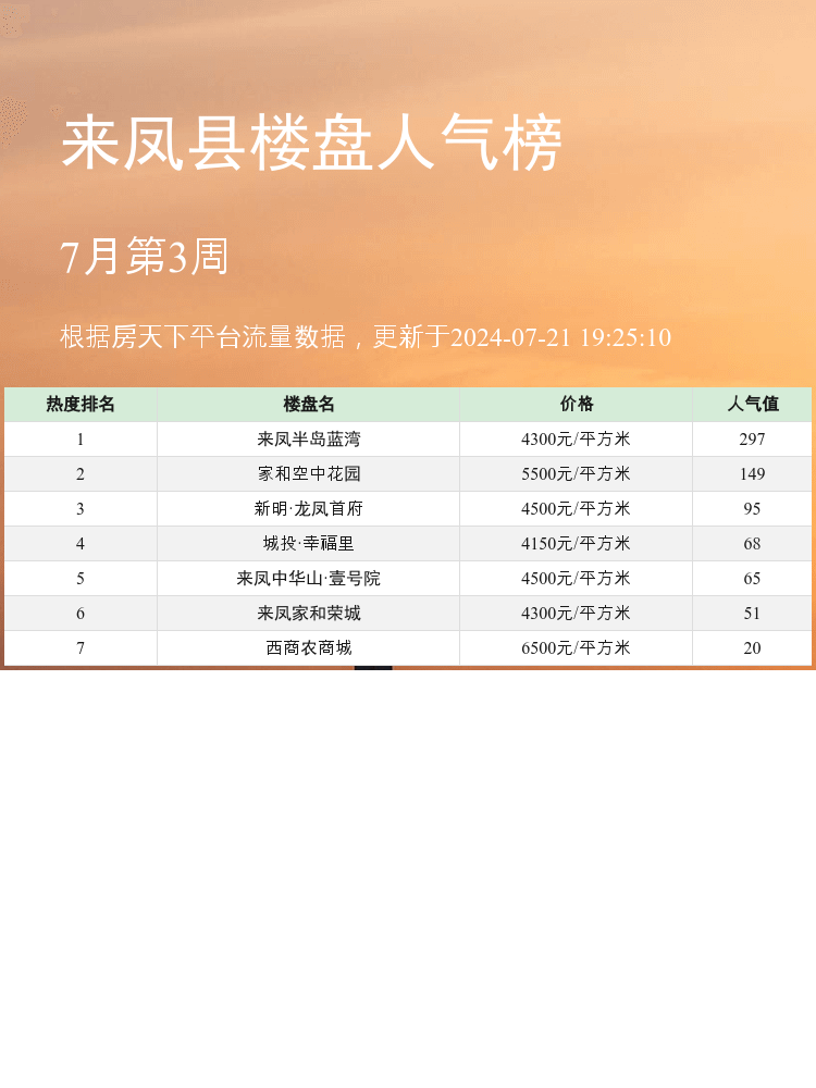 买房看楼盘,不仅仅是看价格🏠,还要考虑周边配套和交通便利性🚉。这次我们整理了来凤县最🔥的人气楼盘榜单,帮助大家更好地选择自己的梦想家园🌟。