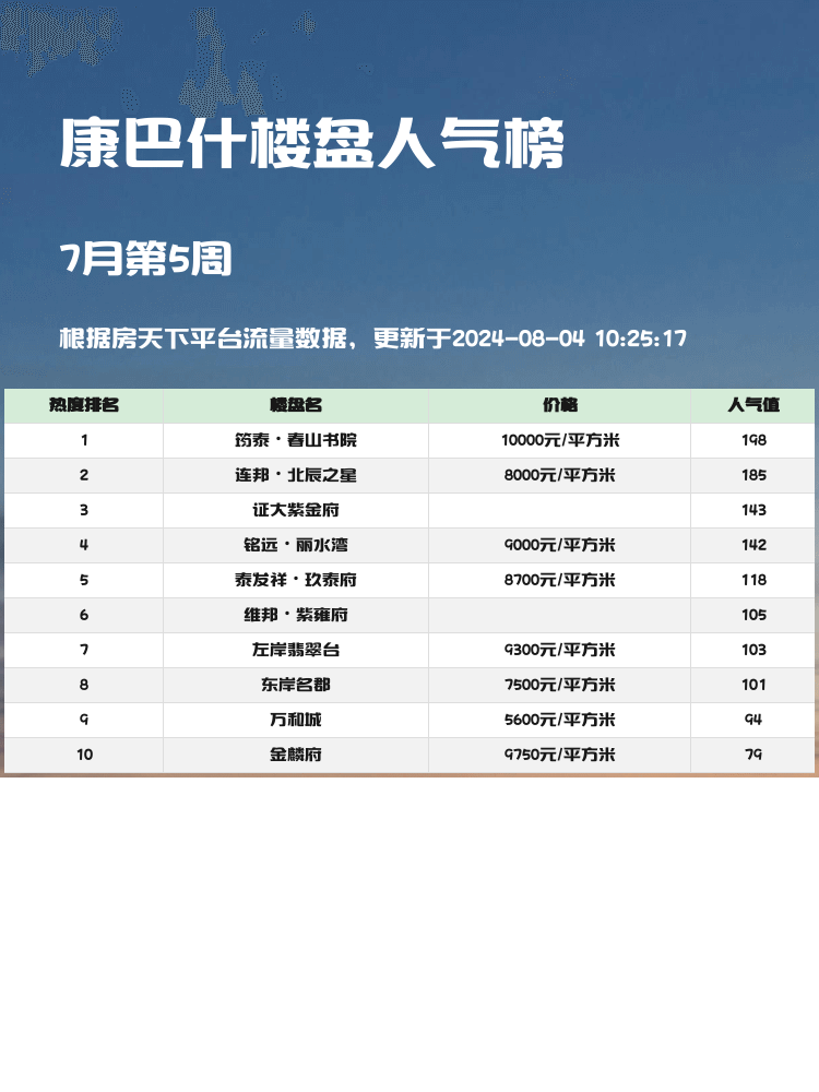 在当下买房市场,了解人气楼盘榜单至关重要🏢。买房不仅仅是居住需求,更是一种投资💰。选择热度高的楼盘,意味着更好的升值潜力和生活品质。在康巴什这个地区,哪些楼盘最受追捧呢?我们一起来看看吧!