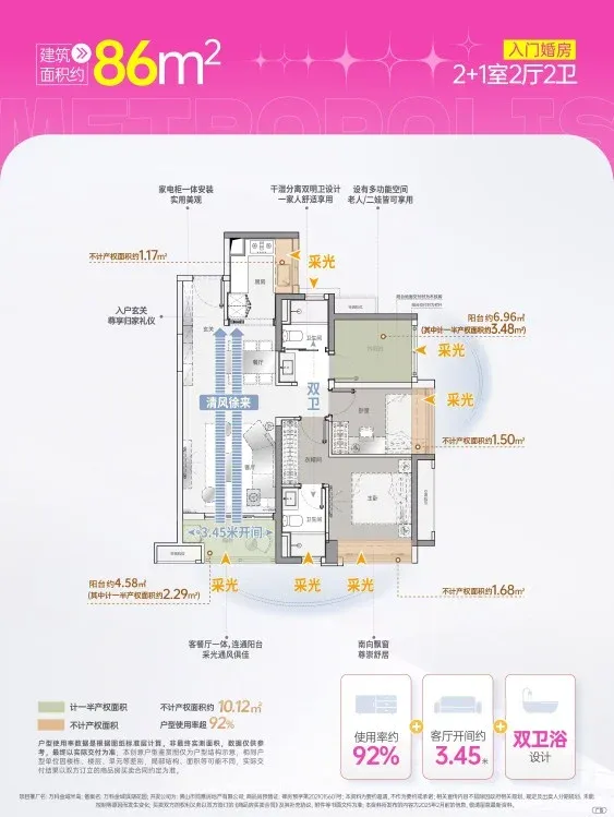 ☕️86㎡三房双卫神布局!主卧套房+独立卫浴双配置✨