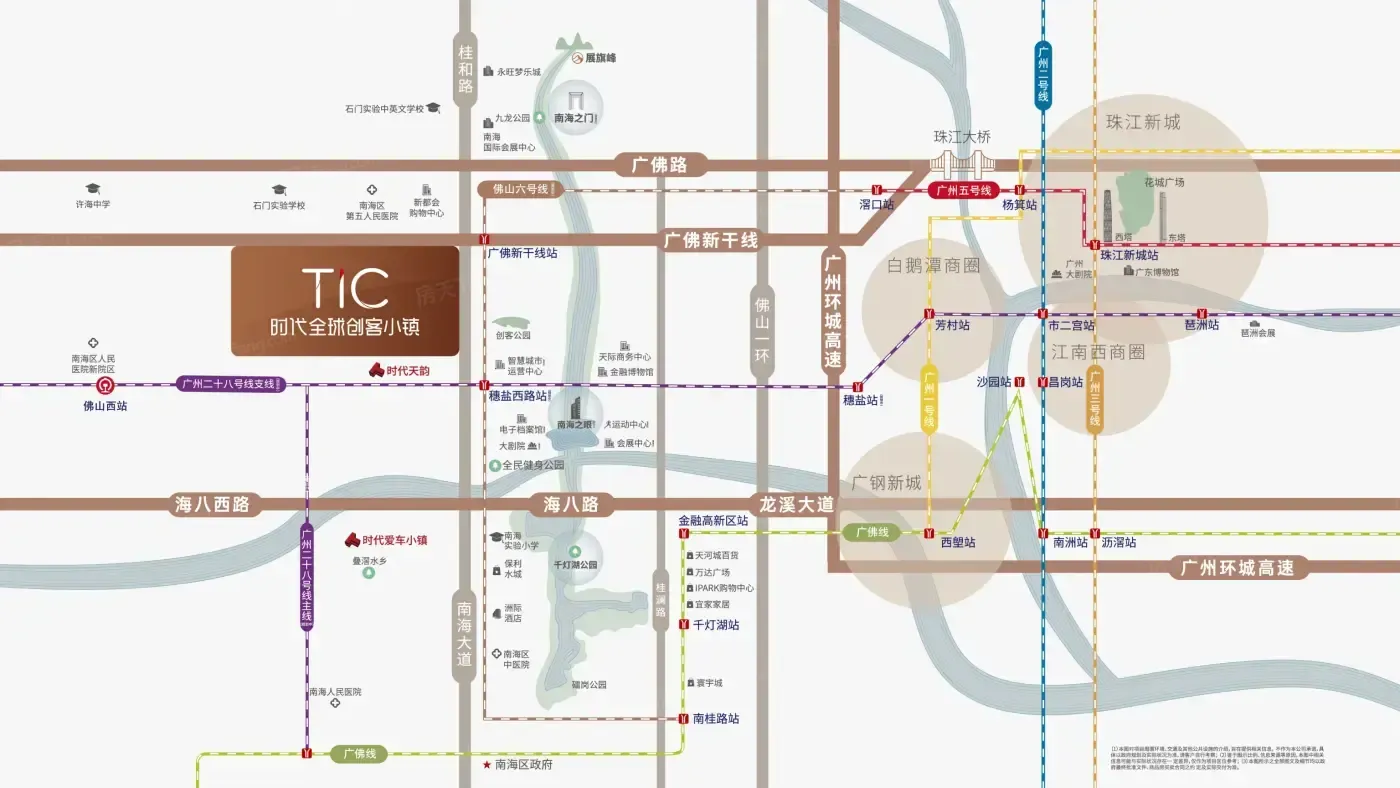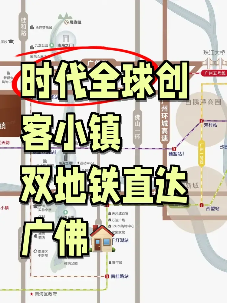 同事阿杰最近突然不再抱怨通勤了。上周五下班,我在地铁口碰到他拎着咖啡慢悠悠走回家,才知道他搬到了时代全球创客小镇。这个藏在南海超级中轴上的社区,28号线奇槎站正在家门口叮叮当当施工,他说现在下班坐地铁比点外卖还快——2站到荔湾喝早茶,3站到海珠见客户,连周末去越秀看展都像下楼遛弯。
