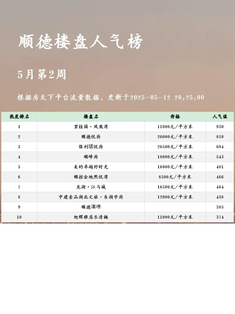 买房不踩雷💣这份顺德人气楼盘榜单必须收藏!当前市场下,购房者更关注性价比+配套成熟度+交通便利性,这份真实热度排行能帮你快速锁定优质选项✨快来看看TOP3楼盘都有哪些硬核优势吧~