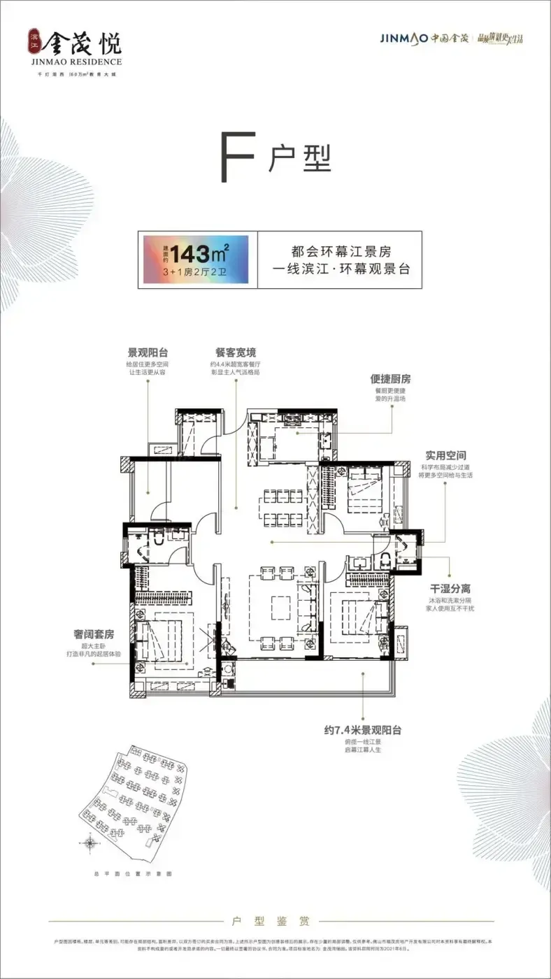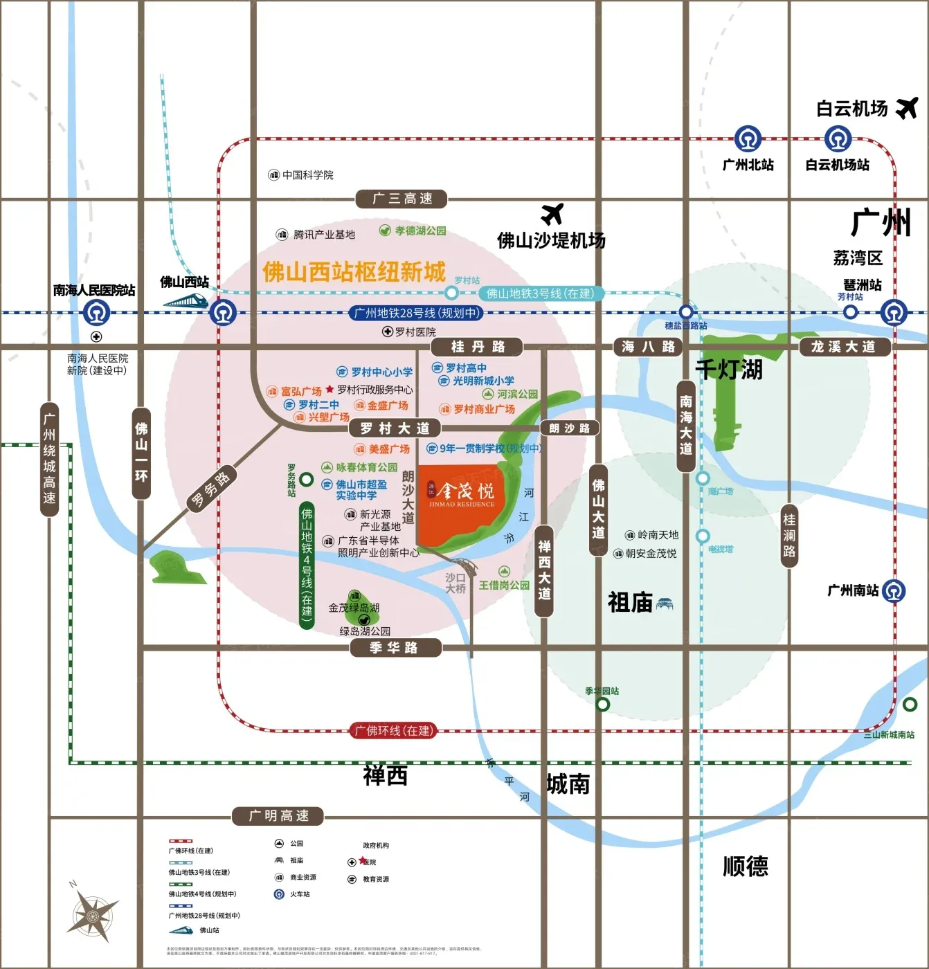 这个盘确实有肉眼可见的优势:东南向143㎡户型270°环幕江景,主卧飘窗正对3公里滨江公园。教育配套算硬核,现成的光明新城小学+罗村二中,北侧还有规划中的省一级学校。对于在佛山西站上班的新生代家庭,20分钟直达禅桂的交通成本很友好。
