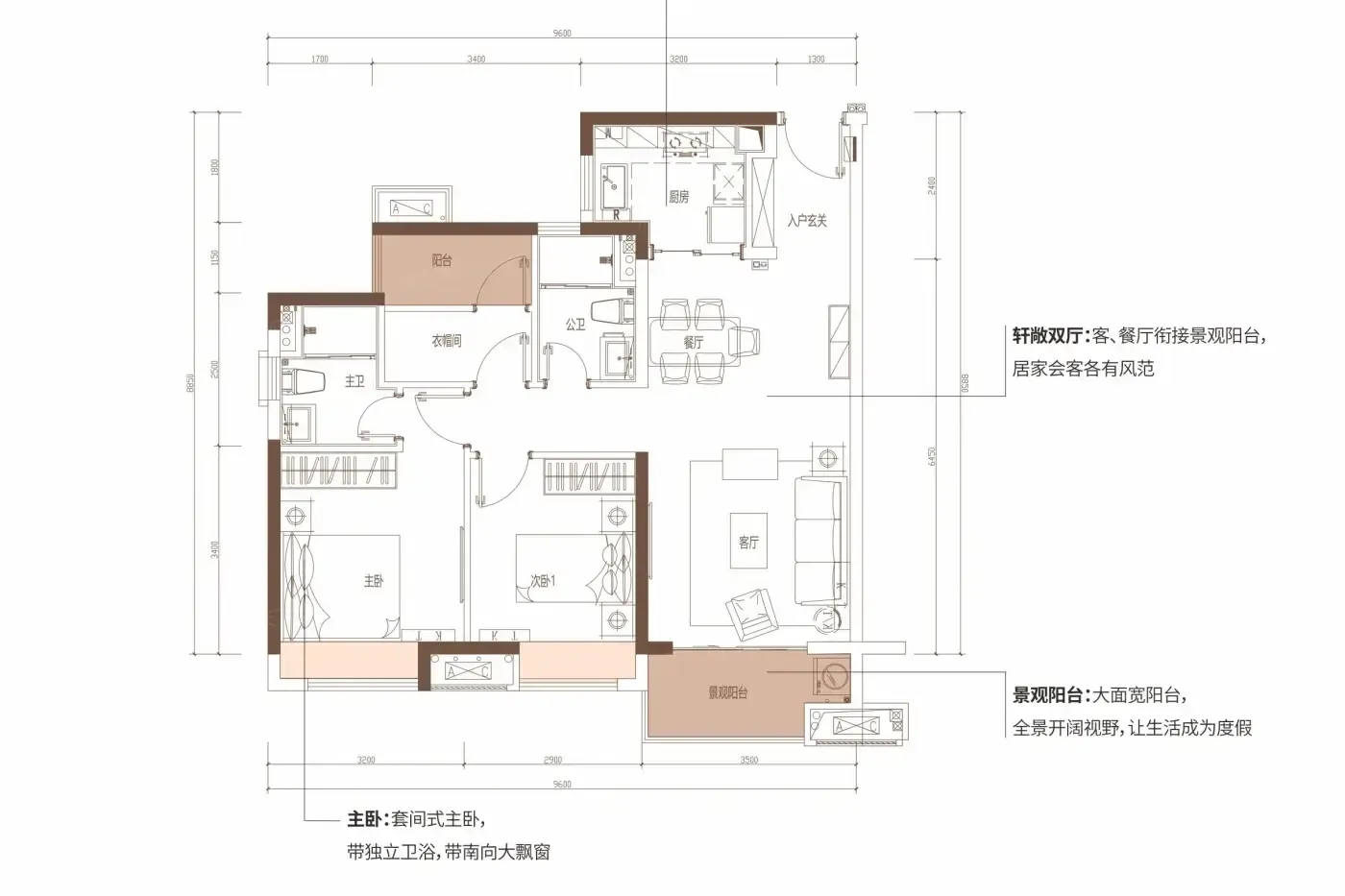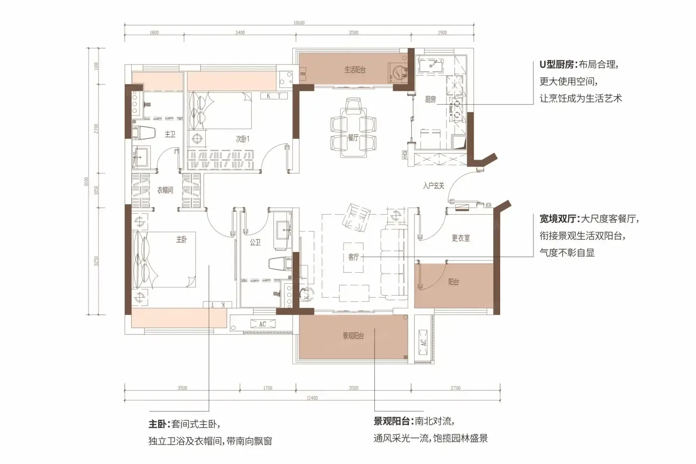 - 厨房操作台面仅4.2米,双人备餐略拥挤