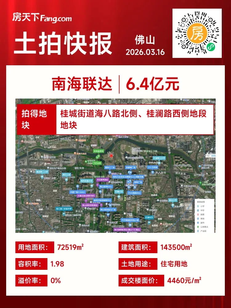 🚨超重磅!南海联达联合体以总价6.4亿元底价斩获千灯湖核心涉宅用地!楼面价定格4460元/㎡,未来将打造新华昌·新濠国际高端文旅项目🔥