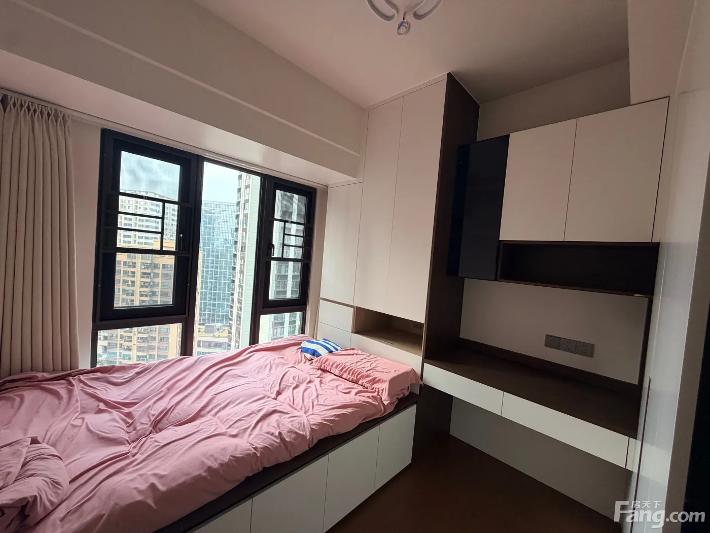 我们这套是精装修的三房两卫,我自己住主卧,出租的两间次卧都带衣柜和床。公共区域特别宽敞,客厅有大落地窗和景观阳台,两个卫生间完全够用~