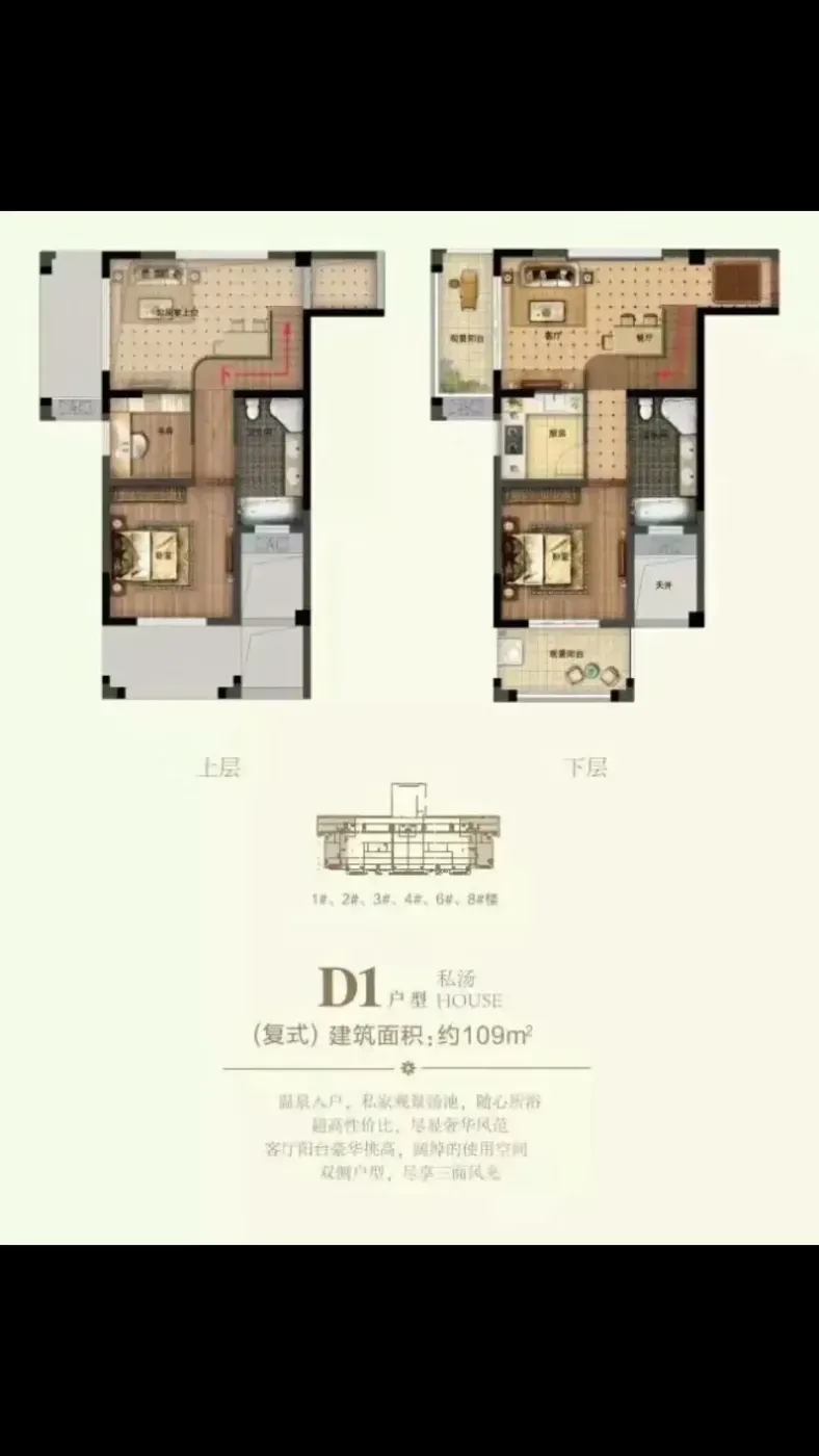 标题:自家一线江景复式洋房急售!温泉入户超值价💖
