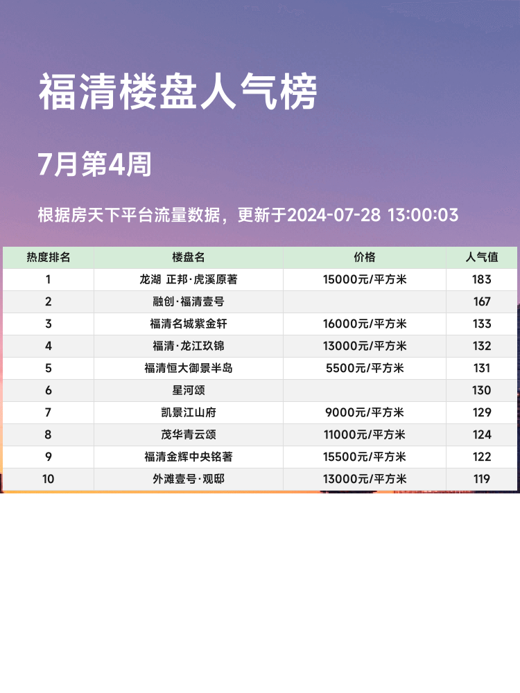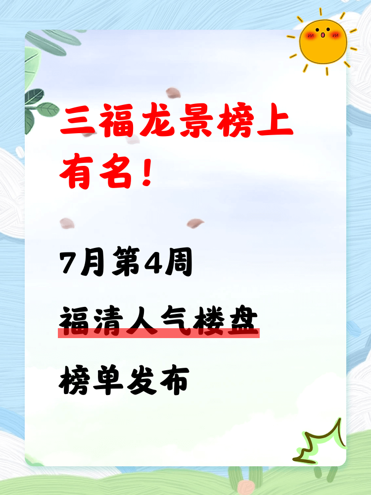 🏆 **福清人气楼盘榜热度排名第1名: 三福龙景**