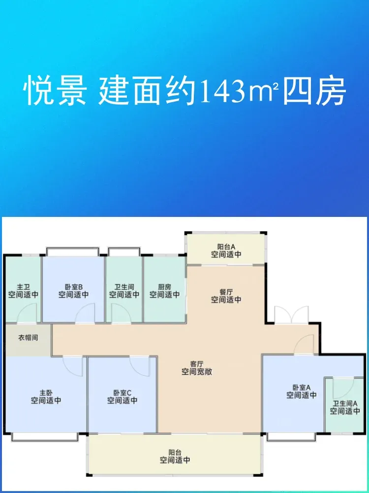 🌆悦景143㎡四房: