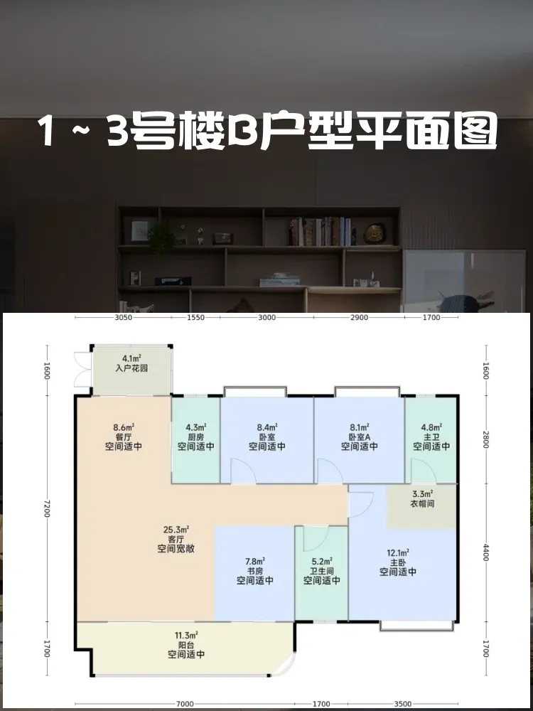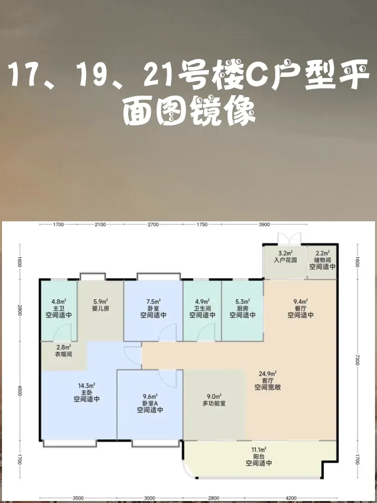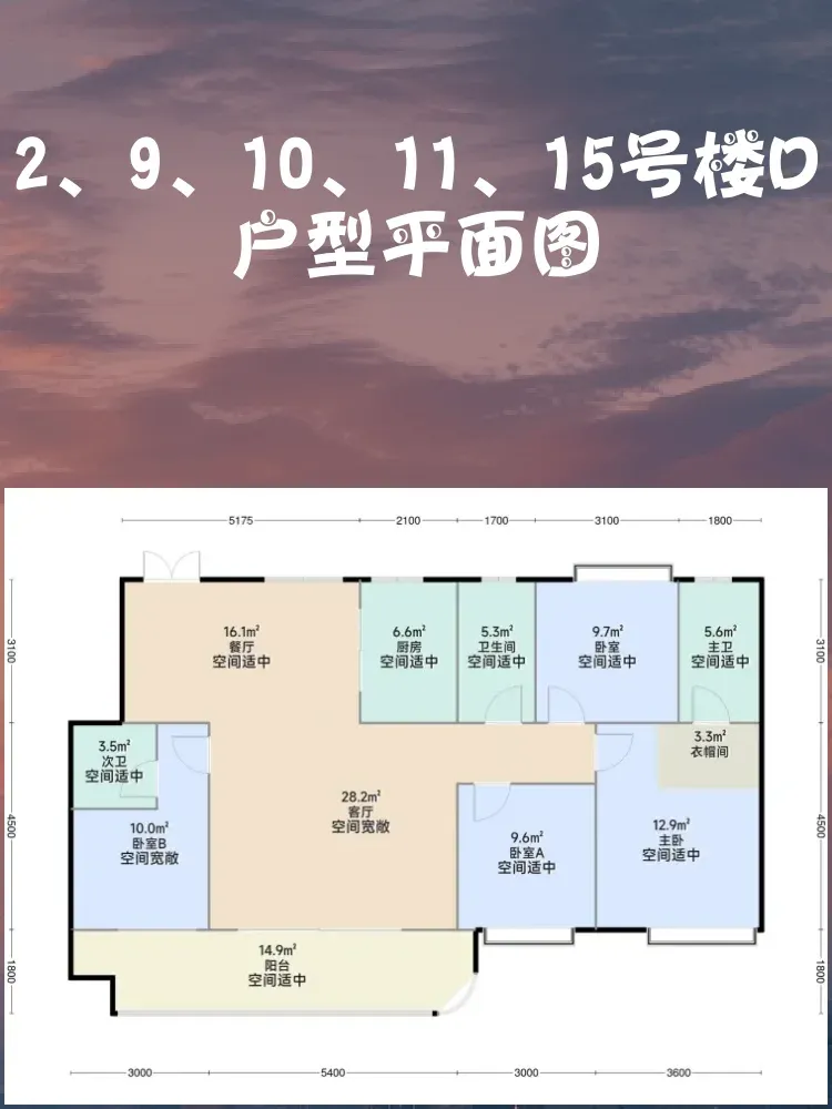 ✓ 双主卧配置!南向主套带衣帽间,北向次主卧3.2米开间,二胎家庭福音👨👩👧👦
