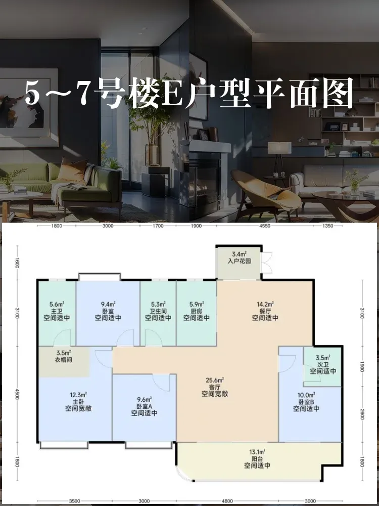 ⚠️ 注意!E户型有3卫但玄关过道占6㎡,D户型动静分区更优但北卧临电梯井