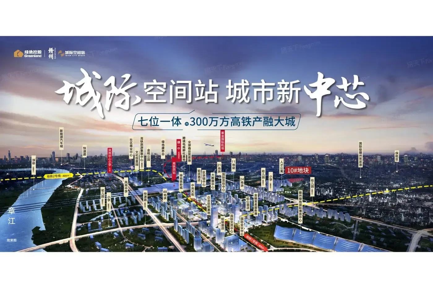高铁新城板块绿地城际空间站均价7500元/㎡,总价70万起,周边规划商业配套