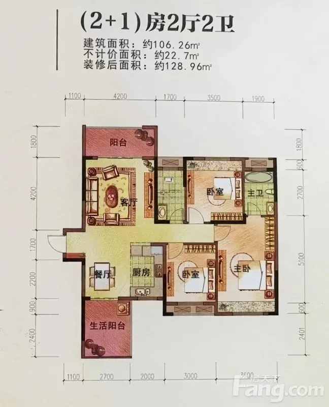 ✅ **真·三房**!建面106.8㎡,主卧带飘窗,次卧方正,小房间能改书房或儿童房,自家住着超舒心~