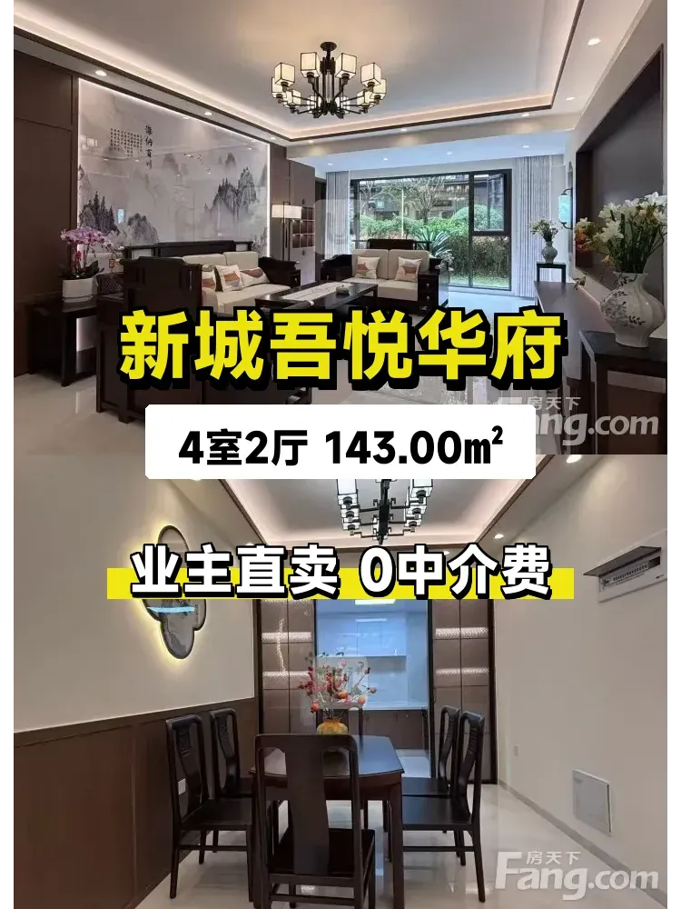 标题:自家143平四房急售!新城吾悦华府南北通透首层好房🏡