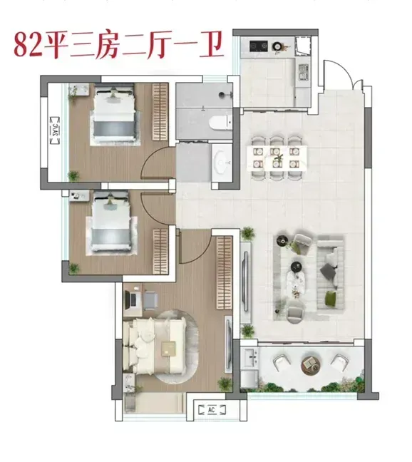 面积82-131平米三至五房