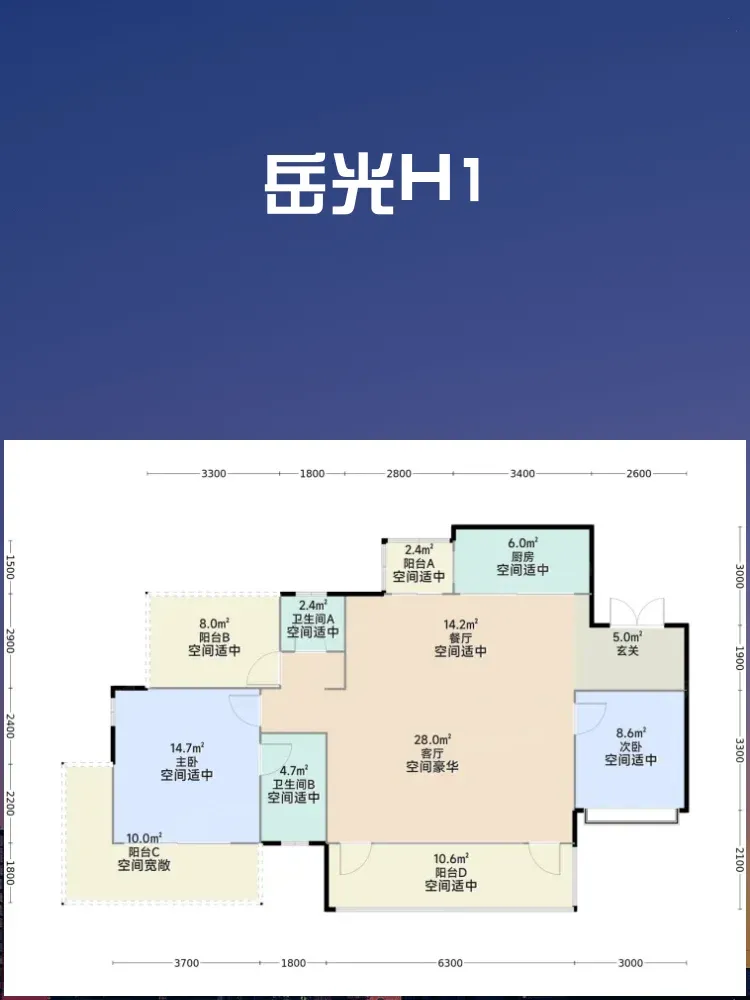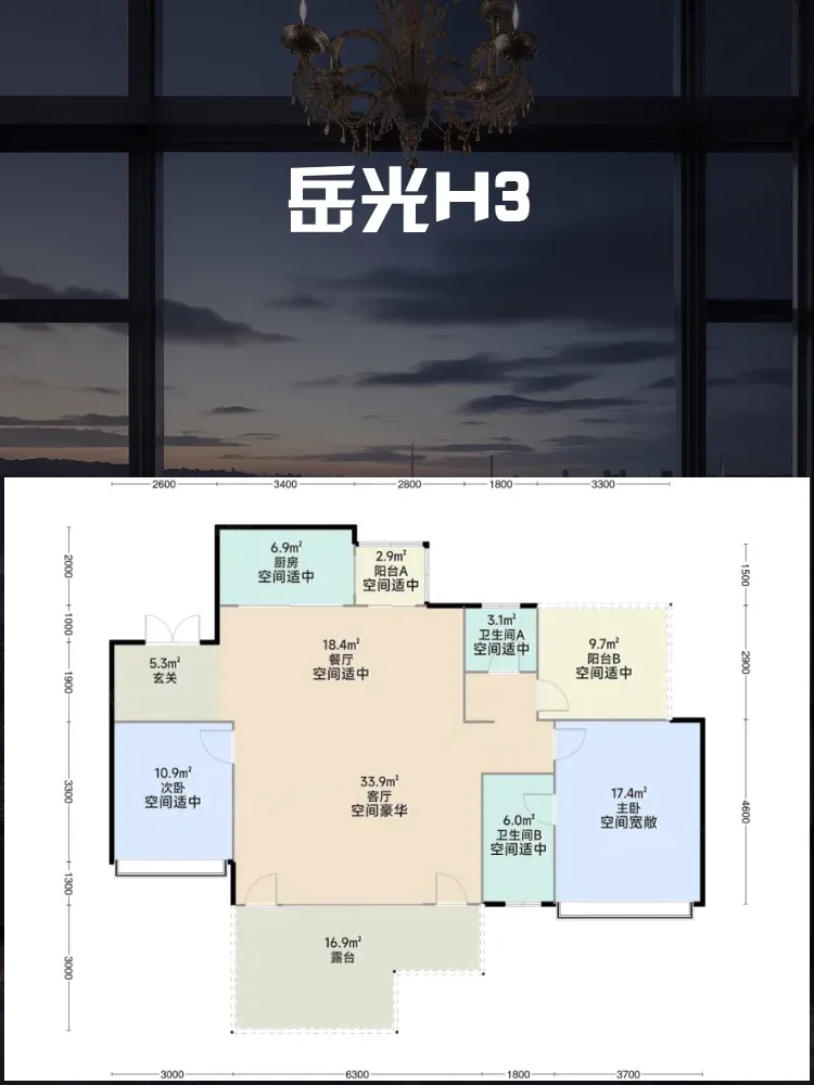 ◾️南北双阳台总面宽9.3米,客厅连接4.2米景观阳台,次卧配套5.1米生活阳台🌬️