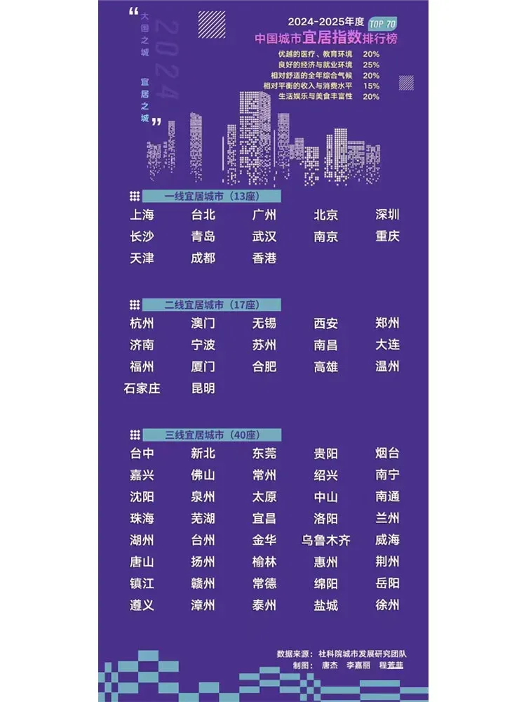 最新宜居城市排行榜出炉了,一线宜居城市13座,二线宜居城市17座,三线宜居城市40座。