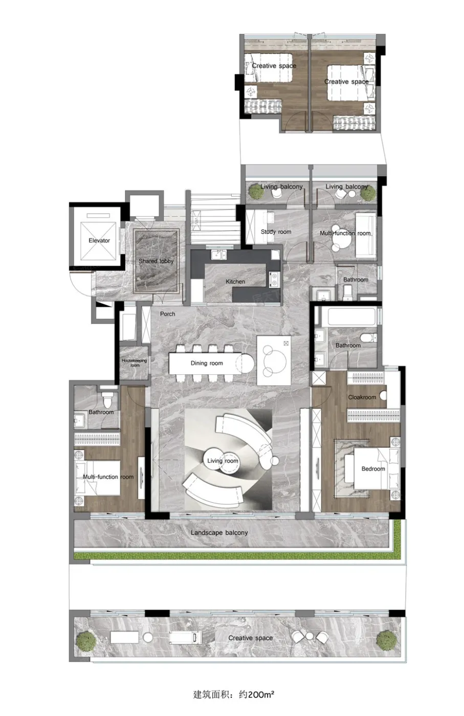 👉双主卧配置:夫妻各有私密领地