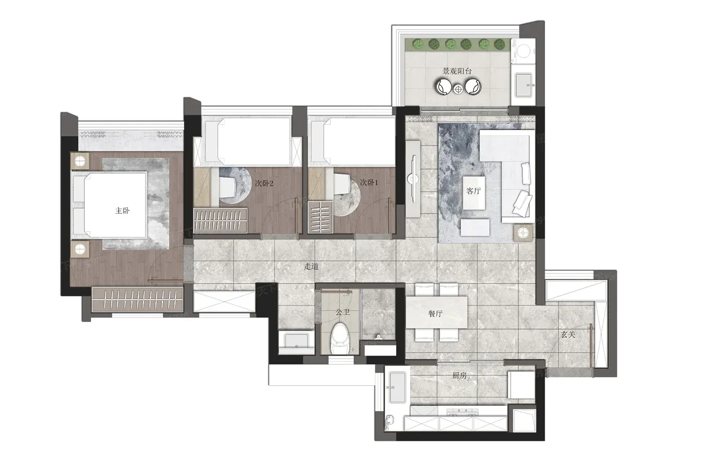 ▫️76㎡三房户型给玄关柜留足空间,高跟鞋和运动鞋能和平共处