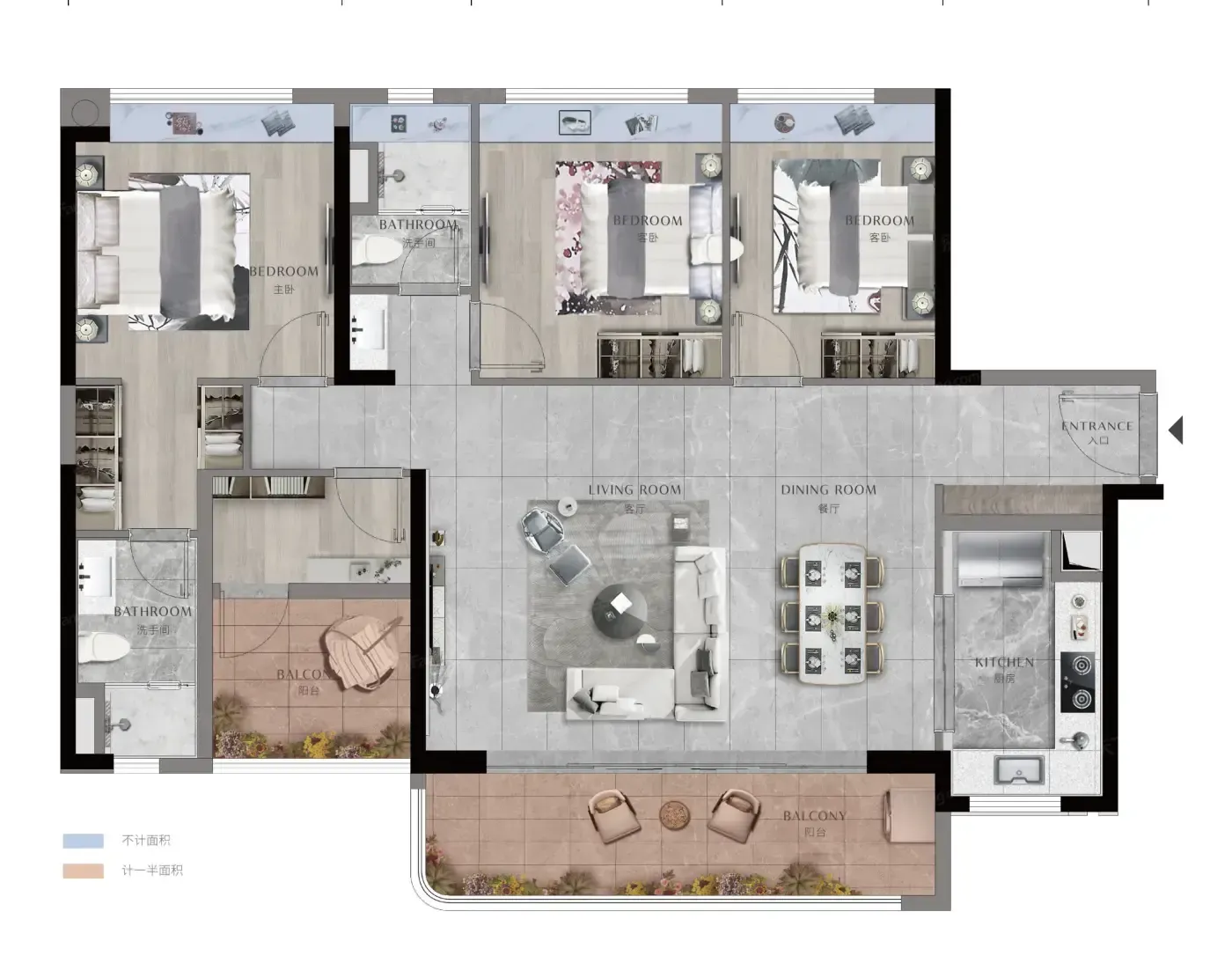 105㎡户型6米阔景阳台太犯规!实测站阳台上看珠江潮起潮落,比电影院IMAX还震撼。但要注意西晒户型,建议选东向单位配电动遮阳帘更实用。
