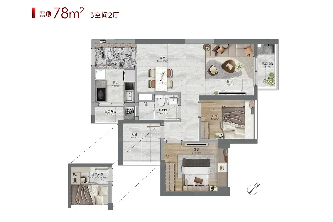 5. 76㎡做三房够用?实测主卧开间仅2.7米,放完1.8米床连衣柜都打不开!