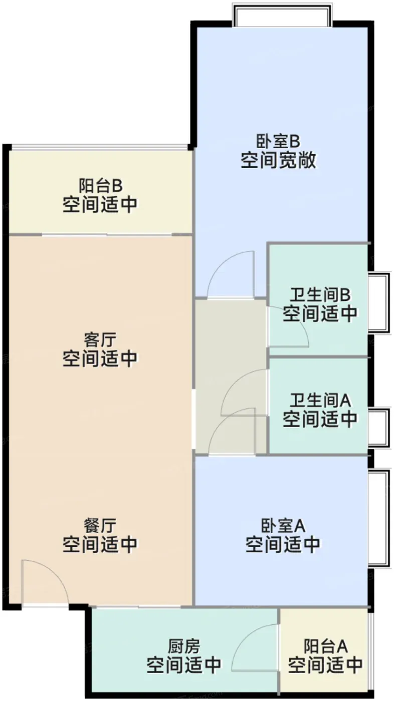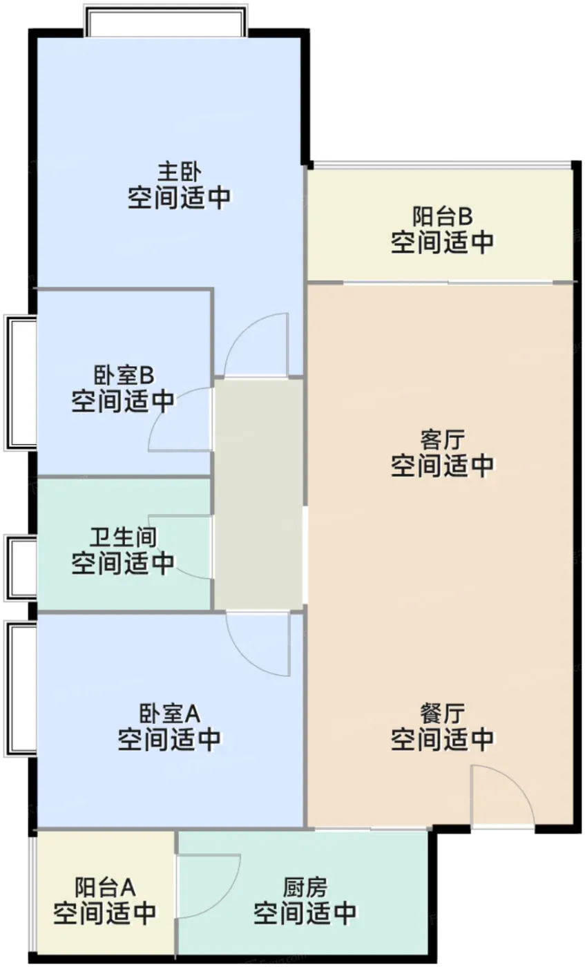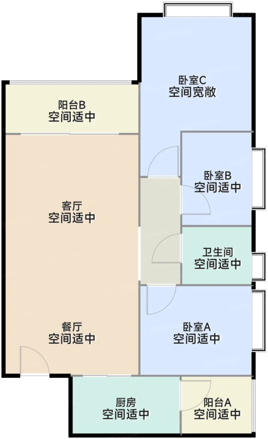 ① 偷面积绝活:83㎡户型塞进四开间朝南+6.1米宽厅,主卧飘窗秒变观景台,次卧赠送飘窗柜相当于白赚0.6㎡储物空间