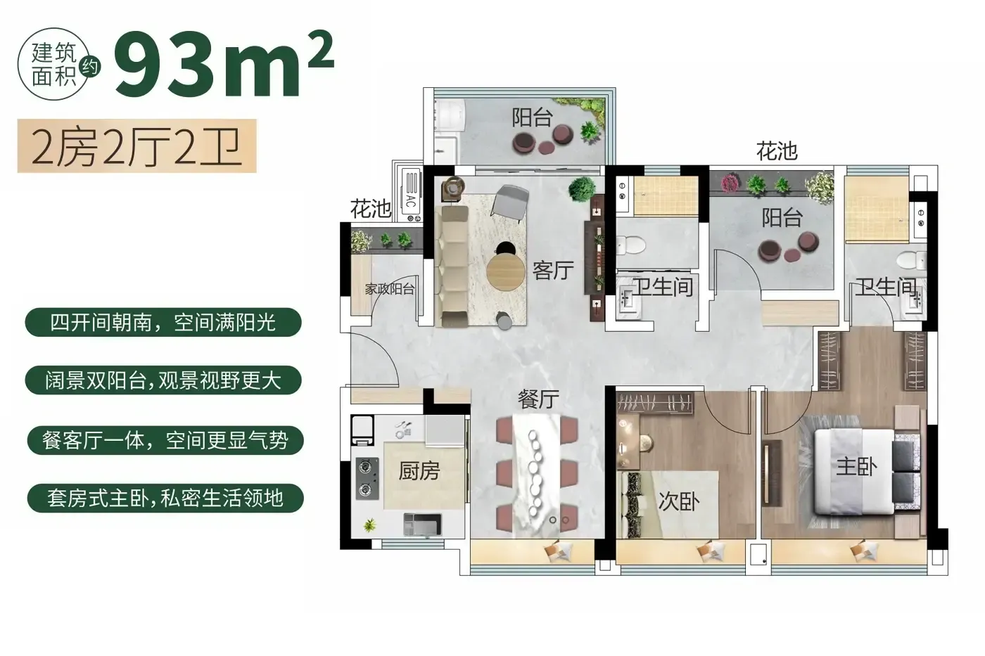 项目93㎡做四房两卫,主卧带飘窗能改咖啡角,次卧还能塞下书桌+衣柜。但要注意北向次卧面宽仅2.6米,床尾过道只剩30cm。建议带卷尺实测家具尺寸,毕竟现房优势就是能现场比划。