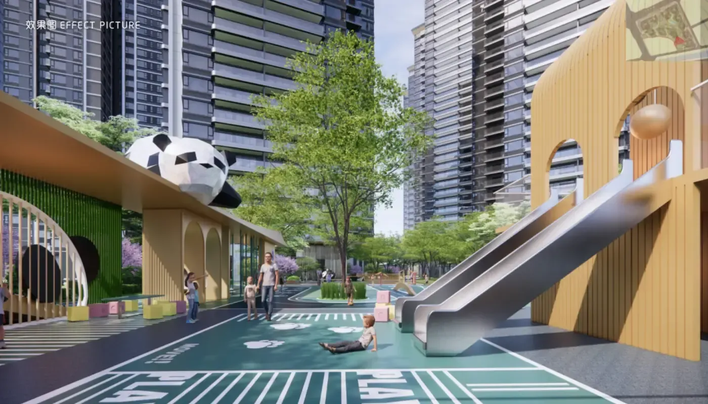 不过要吐槽的是4.33容积率确实偏高,好在项目用「垂直森林」概念做了五重立体园林,儿童区藏在绿植环抱中倒是挺贴心。最惊喜的是动静分区设计,主卧与儿童房隔着客厅对角线布局,深夜加班回家洗漱再也不用蹑手蹑脚啦!