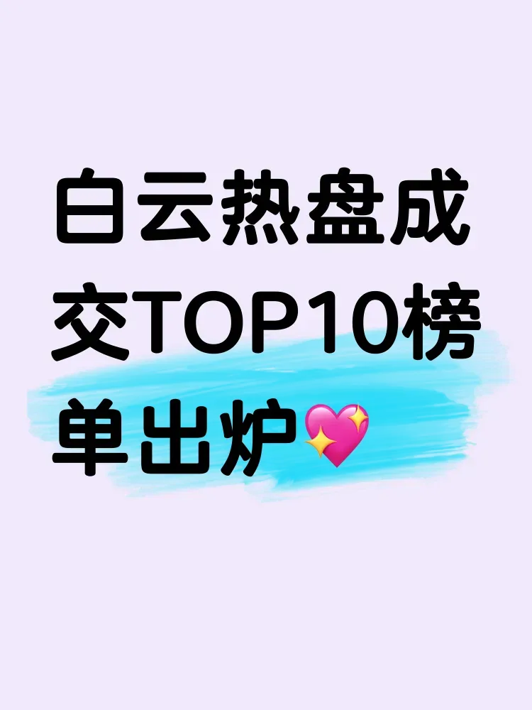 中铁诺德阅泷Ⅱ云臻以9套成交量突围,中建·星光城、国贸云上等品质项目持续释放市场热度。值得关注的是,多个云字系楼盘跻身榜单,云城上品与翡丽云境并列第十,预示白云新城板块价值持续攀升。