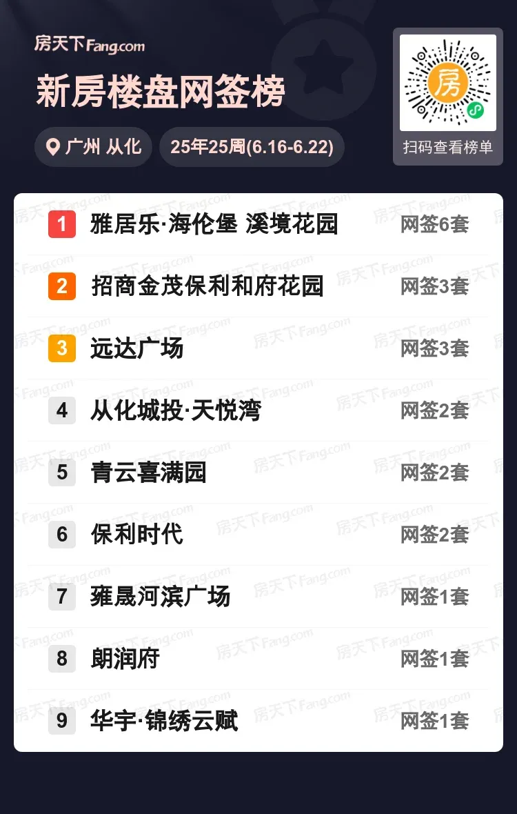 在炙热的六月楼市中,从化区多个项目表现亮眼。雅居乐·海伦堡溪境花园以6套成交量稳居榜首,相当于后三名项目的成交总和。招商金茂保利和府花园与远达广场各成交3套并列第二梯队,天悦湾、保利时代等品质项目也持续获得市场认可。