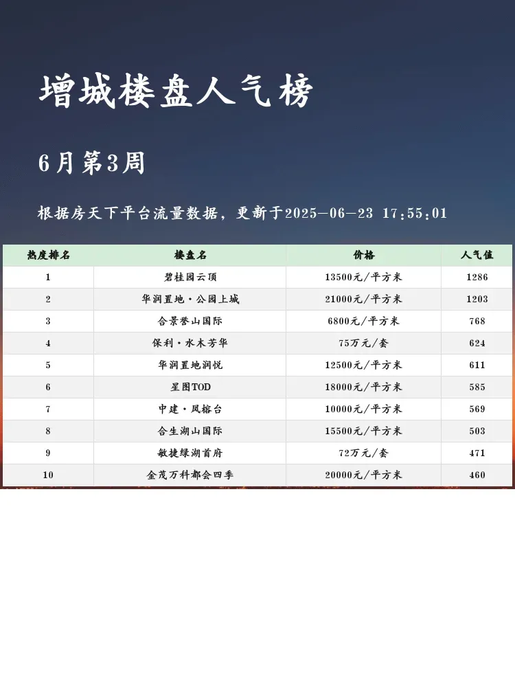 买房选房看人气榜单准没错!🏆人气楼盘不仅反映市场热度,更暗藏升值潜力与居住舒适度的双重密码~当前市场下,跟着榜单选房既能避开"踩雷盘",又能快速锁定高性价比好房!✨