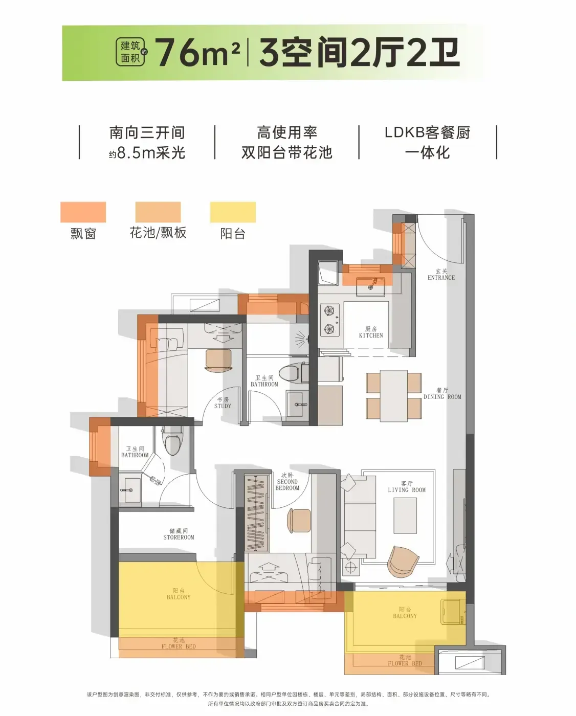 76㎡三房飘窗能塞咖啡角+书桌,126㎡四房主卧配270°转角窗,实测投影仪投白墙刚好。但部分户型厨房采光弱,下午茶星人慎选西厨位。