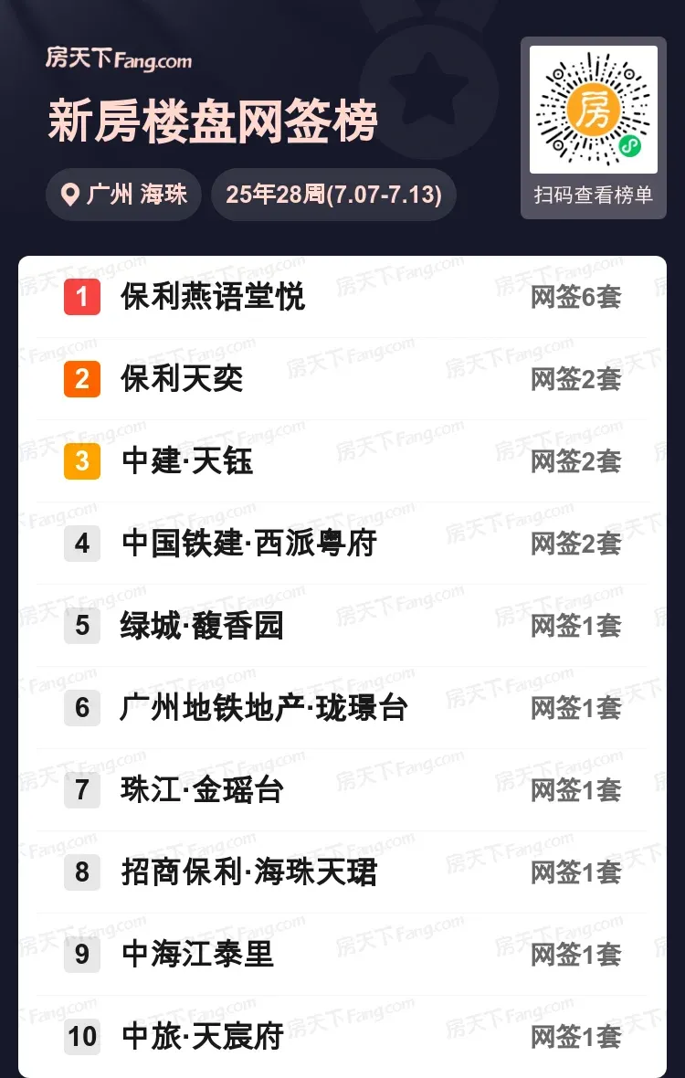 海珠上周楼市成绩单出炉啦!保利燕语堂悦以6套成交量稳居榜首,成为闷声发力的黑马选手。前五名中有四个项目都保持着2套左右的成交量,整体市场呈现多点开花态势。值得关注的是,榜单后半段多个项目仅成交1套,竞争格局随时可能生变。从成交分布来看,优质地段+成熟配套项目仍然吃香,但购房者的选择倾向正在呈现多样化趋势。预计下半年随着新盘入市,市场格局还会有新变化。你在关注哪个项目?欢迎留言分享你的观察~