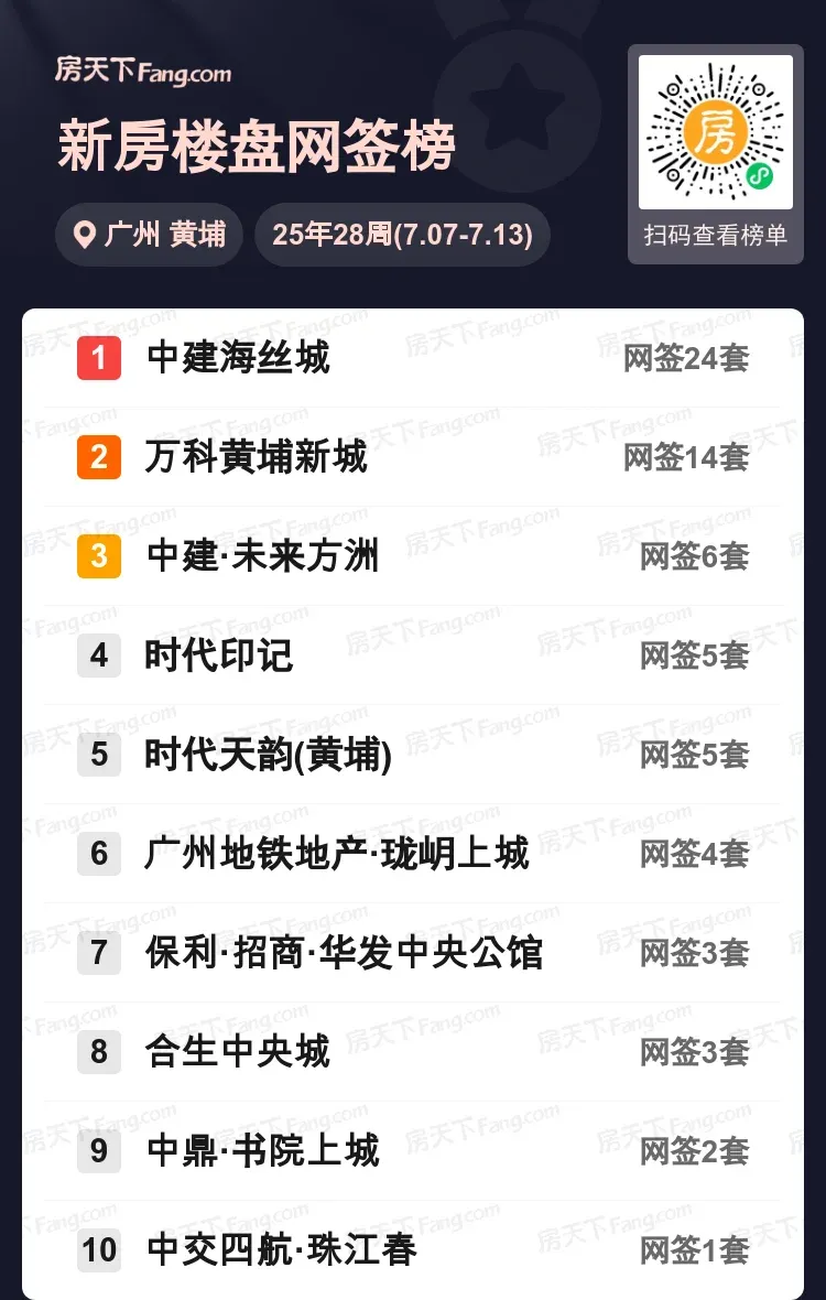 在广州黄埔的盛夏楼市中,中建海丝城以单周24套成交强势领跑,万科黄埔新城以14套稳居第二梯队。令人关注的是,前五名中有三个项目成交套数咬得极紧,形成鲜明竞争态势。从地铁盘珑岄上城到中央公馆等国企项目,都在用实打实的成交数据证明自身价值。预计黄埔核心区项目将持续受改善客群关注,你看好哪个盘后续表现?评论区聊聊你的置业观察~