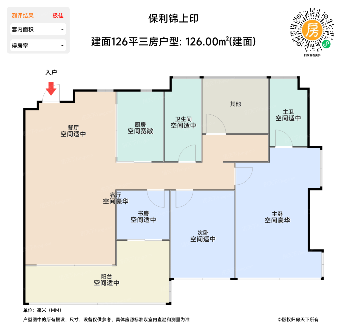 南向板楼+115%得房率的组合,让126㎡户型居然塞进四间全明卧室。主卧L型转角飘窗堪称空间放大术,飘窗台面直接拓展成1.8米梳妆台,这在同面积段极为少见。
