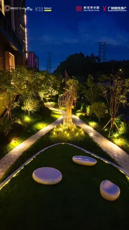 耀胜尊府小区晚上的灯光展示效果